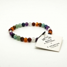 Le bracelet sept chakras est composé de sept pierres naturelles, chacune correspondant à un de nos sept chakras principaux : racine, sacré, plexus solaire, cœur, gorge, troisième œil et couronne. Le cristal de roche vient équilibrer les forces de cette synergie.